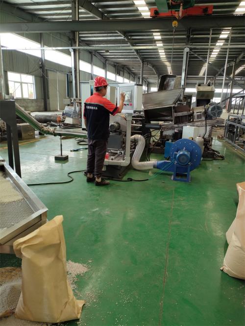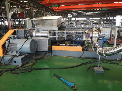 一、系統(tǒng)機組技術參數(shù)Ⅰ、機器顏色:主機為:公司標色;電柜為:電腦色;防護罩:黃色Ⅱ、擠出工藝: 75L密煉機——自動提升機——錐雙強制喂料機——150單螺桿擠出機——液壓板式換網系統(tǒng)—-----磨面熱切機頭----——一級旋風分離器---——二級旋風分離器------2.5m加長振動篩----——成品料倉-------主機采用:PLC控制Ⅲ、加工物料:PE+60%-70%碳酸鈣產 能:450-600公斤/小時(取決于客戶的配方、工藝、生產條件)密煉單螺桿造粒機設備特點:這套設備是環(huán)保型;整設備不需要接外循環(huán)水系統(tǒng);自帶循環(huán)冷卻統(tǒng)是我公司專利產品,(發(fā)明專利號:CN201911312134.6)1.最大好處:整套0水排放;無水污染;環(huán)保好過2.齒輪箱冷卻采用:采用環(huán)保冷卻系統(tǒng)(環(huán)保型:發(fā)明專利號:CN201911312134.6)不需要接外循環(huán)水冷卻,不用徘外水;采用閉環(huán)循環(huán)系統(tǒng),不用擔心長時間使用水冷卻會產生水垢把冷卻器堵住,導致齒輪箱損壞3.主機水箱冷卻系統(tǒng)采用:采用環(huán)保冷卻系統(tǒng)(環(huán)保型發(fā)明專利號:CN201911312134.6)不需要接外循環(huán)水冷卻,不用徘外水;采用閉環(huán)循環(huán)系統(tǒng)4. 節(jié)能:普通筒體筒體冷卻;例如:第5區(qū)溫度超高;這是電子閥導通;第5區(qū)冷卻回水就會影響第六區(qū)和第四區(qū)的溫度下降;就會導致第四六區(qū)加溫;這種情況會一直循環(huán)出現(xiàn);導致電費浪費;我們現(xiàn)在采用環(huán)保型就徹底解決這個問題;我們設備比同類設備節(jié)能:10-15%電費5.減少投資款:3米*3米*2.5米冷卻水池;60立方冷卻水塔及4KW高壓水泵2臺及管道,10天施工費用:能減少固定投資大概:10-12萬元左右