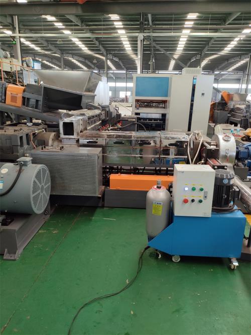 一、系統(tǒng)機(jī)組技術(shù)參數(shù)Ⅰ、機(jī)器顏色:主機(jī)為:公司標(biāo)色;電柜為:電腦色;防護(hù)罩:黃色Ⅱ、擠出工藝:75L密煉機(jī)——--自動(dòng)提升機(jī)——-錐雙喂料機(jī)——JDL-65D雙螺桿----——JDL-150單螺桿擠出機(jī)————風(fēng)冷模面熱切造粒輔機(jī)——一級(jí)旋風(fēng)分離器--——--二級(jí)旋風(fēng)分離器-----風(fēng)冷振動(dòng)篩(2.5m)----三級(jí)旋風(fēng)分離器---——風(fēng)吹成品料倉(cāng)-------主機(jī)采用:PLC控制Ⅲ、加工物料:輻照交聯(lián)低煙無(wú)鹵料 密煉雙階熱切機(jī)組產(chǎn) 能:9-11噸/24小時(shí)注 意:取決于客戶的配方、工藝、生產(chǎn)條件客戶為何購(gòu)買我們?cè)O(shè)備,我們價(jià)位在行業(yè)屬于中低價(jià)格,我們?cè)O(shè)備能給客戶帶來(lái)哪里利益,我們?cè)O(shè)備能給用戶帶來(lái)以下利益:1.特點(diǎn):這套設(shè)備主機(jī)是環(huán)保型;主機(jī)設(shè)備不需要接外循環(huán)水系統(tǒng);自帶循環(huán)冷卻統(tǒng)是我公司專利產(chǎn)品,2.雙螺桿齒輪箱冷卻采用:采用環(huán)保冷卻系統(tǒng)(環(huán)保型:發(fā)明專利號(hào):CN201911312134.6)不需要接外循環(huán)水冷卻,不用徘外水;采用閉環(huán)循環(huán)系統(tǒng),不用擔(dān)心長(zhǎng)時(shí)間使用水冷卻會(huì)產(chǎn)生水垢把冷卻器堵住,導(dǎo)致齒輪箱損壞3.單螺桿齒輪箱冷卻采用:采用環(huán)保冷卻系統(tǒng)(環(huán)保型:發(fā)明專利號(hào):CN201911312134.6)不需要接外循環(huán)水冷卻,不用徘外水;采用閉環(huán)循環(huán)系統(tǒng),不用擔(dān)心長(zhǎng)時(shí)間使用水冷卻會(huì)產(chǎn)生水垢把冷卻器堵住,導(dǎo)致齒輪箱損壞4.雙階主機(jī)水箱冷卻系統(tǒng)采用:采用環(huán)保冷卻系統(tǒng)(環(huán)保型:發(fā)明專利號(hào):CN201911312134.6)不需要接外循環(huán)水冷卻,不用徘外水;采用閉環(huán)循環(huán)系統(tǒng)5.節(jié)能:普通筒體筒體冷卻;例如:第5區(qū)溫度超高;這是電子閥導(dǎo)通;第5區(qū)冷卻回水就會(huì)影響第六區(qū)和第四區(qū)的溫度下降;就會(huì)導(dǎo)致第四六區(qū)加溫;這種情況會(huì)一直循環(huán)出現(xiàn);導(dǎo)致電費(fèi)浪費(fèi);我們現(xiàn)在采用環(huán)保型就徹底解決這個(gè)問(wèn)題;加我們委托第三方開(kāi)發(fā)溫控模塊,溫控加熱系統(tǒng)比同類設(shè)備節(jié)能:10-20%電費(fèi),就是每噸能為客戶節(jié)省電費(fèi)10元,每年大概能節(jié)約電費(fèi)3萬(wàn)6.減少投資款:3米*3米*2.5米冷卻水池;60立方冷卻水塔及4KW高壓水泵2臺(tái)及管道,10天施工費(fèi)用:能減少固定投資大概:10-12萬(wàn)元左右7.雙螺桿齒輪箱采用D型8.液壓板式換網(wǎng)器通水冷卻控溫二.密煉雙階熱切機(jī)組 技術(shù)配置