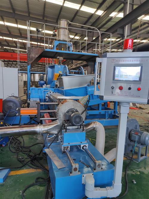 CN201911312134.6)不需要接外循環(huán)水冷卻,不用徘外水;采用閉環(huán)循環(huán)系統(tǒng)密煉單螺桿造粒機(jī)4.節(jié)能:普通筒體筒體冷卻;例如:第5區(qū)溫度超高;這是電子閥導(dǎo)通;第5區(qū)冷卻回水就會(huì)影響第六區(qū)和第四區(qū)的溫度下降;就會(huì)導(dǎo)致第四六區(qū)加溫;這種情況會(huì)一直循環(huán)出現(xiàn);導(dǎo)致電費(fèi)浪費(fèi);我們現(xiàn)在采用環(huán)保型就徹底解決這個(gè)問(wèn)題;加我們委托第三方開(kāi)發(fā)溫控模塊,溫控加熱系統(tǒng)比同類(lèi)設(shè)備節(jié)能:10-20%電費(fèi),就是每噸能為客戶(hù)節(jié)省電費(fèi)10元,每年大概能節(jié)約電費(fèi)3-5萬(wàn)5.減少投資款:3米*3米*2.5米冷卻水池;60立方冷卻水塔及4KW高壓水泵2臺(tái)及管道,10天施工費(fèi)用:能減少固定投資大概:10-12萬(wàn)元左右6.換網(wǎng)器通水冷卻控溫 無(wú)鹵阻燃隔音氈生產(chǎn)線 http://m.cnhoho.com/contents/65/157.html